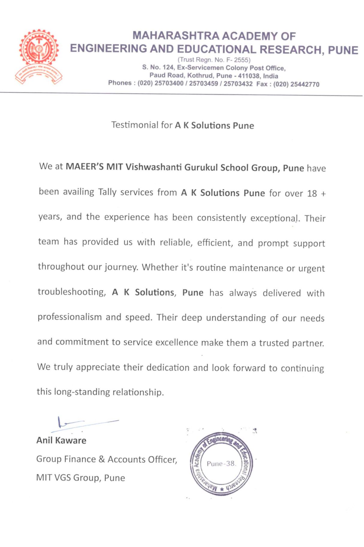 A K Solutions: Backed by an experienced and certified team, we offer comprehensive Tally support and training, ensuring reliable and trusted services for your business needs.